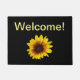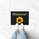 Happy gelbe Sonnenblume auf einer schwarzen Begrüßungsmatte. Die Hintergrundfarbe und der Texttyp können angepasst werden.