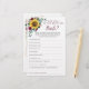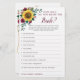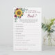 Diese Brautparty-Spielkarte ist Wie gut kennen Sie die Bride? Es gibt 10 Fragen, die Spieler beantworten können. Die Einrichtung umfasst Sonnenblumen in Aquarelltönen und bordeauxfarbene Rose mit Blattwerk. Personalisieren Sie die Rückseite der Karten mit dem Namen der Braut. Matching-Produkte verfügbar.