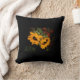 Sonnenblume-Wurfs-Kissen auf schwarzem Hintergrund. Seiten ein hat gelbe Sonnenblumen, die andere Seite ist festes schwarzes Kissen.