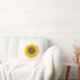 Blumenkissen, mit einem gelben Sonnenblumenbild auf weißem Hintergrund. Ideal, um Ihrer Wohngestaltung eine rustikale Touch hinzuzufügen.