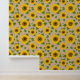 Land in seiner besten Form auf dieser Tapete! Hellgelbe Sonnenblumen mit grünen Blätter überlagert auf einem bräunlichen Bräunungstext, sehr niedlich und lustig!