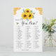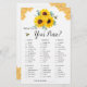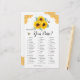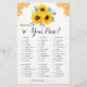 Diese Brautparty-Spielkarte ist Was ist in deiner Handtasche? Das Design zeichnet sich durch ein florales Aquarell-Design mit Sonnenblumen, Eukalyptus-Blätter, Honigbienen und Honigwaben aus. Personalisieren Sie die Rückseite der Karten mit dem Namen der Braut. Es stehen auch passende Brautparty Party-Vorräte zur Verfügung.