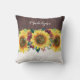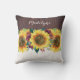 Dieses personalisierte Sonnenblumenkissen besticht durch Aquarellsonnenblumen und bordeauxfarbene Rose, Blume und Blattwerk mit Imitaten und Spitzen-Design. Personalisieren Sie den Text mit einem oder mehreren Initialen.