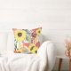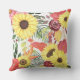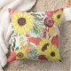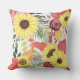 Die Aquarellbilder von goldenen Sonnenblumen und Maronen- und Rosenrosen bilden ein hübsches Interieur auf diesem farbenfrohen Kissen. Zusammen mit der Blume Bilder sind weiche grün und violett Lavendel Blätter. Die Bilder werden auf einem weißen Hintergrund platziert. Beide Seiten des Kissens haben das gleiche Design.