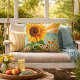 Lebhaftes Kunstwerk einer Sonnenblume, Wasser und Sonnenschein, um das Soul zu beruhigen. Mit dem Zitat "Sei die größte und hellste Blüte" heben sich die lebendigen Farben der Sonnenblume von der Sanftheit des Wassers ab und schaffen eine blendende Kombination aus Energie und Gelassenheit.