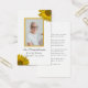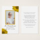 Geben Sie Ihren Gästen, die an der Feierlichkeit des Lebensdienstes Ihrer verstorbenen hübschen Gelbblütengebläse Beerdigung Gedenkkarte teilnehmen. Personalisieren Sie es mit einem Foto, dem Namen des Verstorbenen, den Geburtsdaten und Todesdaten sowie Gedicht oder Gebet auf der Rückseite. Diese fröhliche, benutzerdefinierte Blütenauszeichnung mit gelben Sonnenblumenblüten schmückt die Ecken mit weißem Hintergrund.