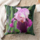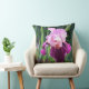 Erfrischung in Ihrem Zimmer mit dieser wunderschönen, sonnengeküssten, zweifarbigen, rosa Magenta-Iris-Blume mit vielen grünen Stielen und Blätter und Blume Knospen, die im Frühling gewartet zu blühen. Die Rückseite des Kissens ist eine solide grüne Farbe. Original Fotografie von TamiraZDesigjns.