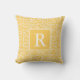 Dieses helle, moderne Monogrammkissen kennzeichnet empfindliches Blätter über einem goldenen gelben Hintergrund.