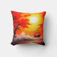 Dieses Kissen hat ein Segelboot bei Sonnenuntergang darauf.
