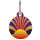 Sun Graffiti Ziegelwand ist ein digitales Kunstwerk mit dunkelblauem Gradientenhintergrund und gelber reflexorangefarbener Gradientensonne am Boden, Sonnenstrahlen leuchten nach oben und nach außen.