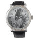 Uhr, Vintage Männeruhr mit schwarzem Lederarmband