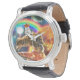 Space Galaxy Cat Riding Tiger on Pizza Armbanduhr