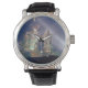 Uhr, Vintage Männeruhr mit schwarzem Lederarmband