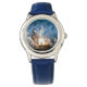 Kinderuhr aus Edelstahl mit blauem Lederarmband