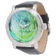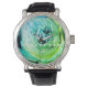 Uhr, Vintage Männeruhr mit schwarzem Lederarmband