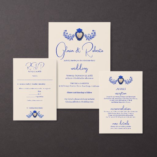 Blue and Champagne Milagro Herz mexikanische Hochzeitskarte auf Spanisch. Die elegante Blue and Champagne Milagro Heart Mexican Wedding Enclosure Card, die die Romantik und den kulturellen Reichtum einer traditionellen mexikanischen Hochzeit, die auch auf Spanisch geschrieben ist, einfangen soll. Diese exquisite Umschließkarte besticht durch ein atemberaubendes, kobaltblauer mexikanisches Milagroherz, das den mexikanischen Kolonialtraditionen gerecht wird. Wenn Sie träumen, Ihre Hochzeit in einer bezaubernden mexikanischen Kolonialstadt zu feiern, oder einfach nur woll dieses bezaubernden Themas zu nehmen, ist dieses Design die perfekte Wahl. Unsere Eintrittskarte ist mehr als nur Schreibwaren, sie spiegelt die Liebe und den lebendigen Geist der mexikanischen Kultur wider. Ideal für Feierlichkeiten, Hochzeiten und Hochzeiten in Urlaubsort in Mexiko, bietet diese Einfriedungskarte alle notwendigen Details für Ihren besonderen Tag und garantiert Ihren Gästen alle Informationen, die sie benötigen. Die Karte wird durch eine Mischung aus Serif- und Kalligraphie-Typografie ergänzt, die ein harmonisches Gleichgewicht zwischen Eleganz und Einfachheit schafft. Die Kombination dieser Elemente schafft ein elegantes und fesselndes visuelles Erlebnis, das Ihren Gästen einen bleibenden Eindruck verlasse. Nahtlose Personalisierung steht im Mittelpunkt dieses Designs. Es ermöglicht Ihnen, Ihre Hochzeitsdetails, wie Veranstaltungsinformationen, Anfahrtsbeschreibung, Unterkunftsoptionen und alle anderen Texte, die Ihren einzigartigen Stil widerspiegeln, einfach hinzuzufügen. Die Schaltfläche "Anpassen" sorgt für einen schnellen und mühelosen Bearbeitungsprozess, der Ihnen die Freiheit gibt, den Text nach Ihren Wünschen neu zu ordnen und zu formatieren. Unsere Designer Mexican Wedding Enclosure Card ist auch in Englisch erhältlich und bietet Ihnen die Flexibilität, Ihre Botschaft in der Sprache zu vermitteln, die Ihr Herz anregt. Mit dieser Option wird sichergestellt, dass sich Ihre Kapselkarte persönlich und kulturell bedeutend anfühlt, unabhängig von der Sprache. Als Teil unserer Kollektion "Champagne & Blue Milagro Heart Mexican Wedding" ergänzt diese Gehäusekarte eine breite Palette von passenden Produkten. Von Einladungen bis zu RSVP-Karten und Umschlägen, können Sie ein zusammenhängendes und atemberaubendes Hochzeitsgeschenkensemble schaffen, das die Magie Ihrer Liebe widerspiegelt. Egal ob Sie eine Fiesta-Theke oder eine lebendige Latinx-Hochzeit planen, unsere Designer Mexican Wedding Enclosure Card ist darauf ausgelegt, Ihren besonderen Tag unvergesslich zu machen. Genießen Sie die Wärme, den Charme und den kulturellen Reichtum mexikanischer Traditionen und verwandeln Sie Ihre Hochzeit in ein unvergessliches Fest. Bestellen Sie noch heute Ihre mexikanische Hochzeitskarte und lass der Feierlichkeiten!