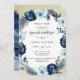 Feiern Sie Ihren besonderen Tag stilvoll mit dieser luxuriösen Einladung in Blau und Gold quinceñera, die einen bleibenden Eindruck hinterlassen soll. An der Vorderseite der Einladung befindet sich ein atemberaubender Blumenkranz in Aquarelltönen, der mit zarten blauen Blumen geschmückt ist. Jede Blüte wurde sorgfältig bemalt, um die Schönheit der Natur zu erfassen. Diese Einladung, die durch ihre goldenen Details ergänzt wird, strahlt Eleganz und Eleganz aus und setzt den perfekten Ton für Ihre Feier. Auf der Rückseite des Hotels steht ein atemberaubender, blau-goldfarbener Apache-Druck, der eine Touch moderner Kunst ergänzt und gleichzeitig das raffinierte Frontdesign ergänzt. Dieses Design ist Teil einer Sammlung mit koordinierenden Elementen. Auch in Englisch verfügbar.