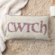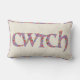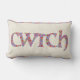 Ein lumbales Kissen des Spaßes mit dem Waliser-Wort "cwtch", "Umarmung" oder "Umarmung" in einem keltischen Skript bedeutend, füllte mit einem hübschen Blumenmuster.