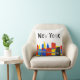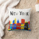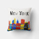Dieser Spaß, spielerisch und kindliche Ausrüstungsbeschreibungen eine Illustration von unterem Manhattan in New York City, mit der Brooklyn-Brücke im Vordergrund. Die Gebäude werden in den Anschlägen der vibrierenden Primärfarben und in der Brücke im Schwarzen und in den Schatten des Graus übertragen. Ein Spaßkissen für jedermann das Lieben New York City.
