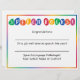 Das Speech Rocks Ende des Schuljahres Lehrer-Zertifikat für Schüler zeigt ein modernes und farbenfroh gemalt Rock-Thema Design, das personalisiert werden kann mit der Sprache Pathologen Titel, Schulname und / oder Schulbezirk.