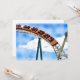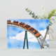 Foto eines orangefarbenen Untersetzer, der die Strecke gegen einen hellblauen Himmel beschleunigt