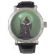 Uhr, Vintage Männeruhr mit schwarzem Lederarmband
