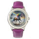 Uhr, Kinderuhr aus Edelstahluhr mit lila Lederarmband