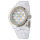 Spezielle tropische Ananas Fruchtmuster Frauen beobachten. Luxuriöse Geschenkidee für Frauen und Mädchen. Personalisierbar mit ihrem Namen. Elegante Schriftzeichen-Vorlage für Namen, Monogramm oder Zitat. Machen Sie Ihr eigenes einzigartiges Stück von luxuriösem Zeitwerk. Stilvolles Design mit fruchtigem Hintergrundbild und Wählnummern. Geschenk zum Geburtstag, Weihnachtsfeiertage, Sweet 16, Abschluss, Hochzeit etc. Kaufen Sie für Ehefrau, Freundin, Schwester, Mutter, Mutter, Freundin, Cousin, Tante, Oma, Tochter etc. Chic Ladys Accessoires mit exotischem Regenbogen Icon Druck.
