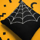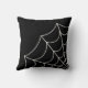 Mit diesem Kopfkissen kann man die Dekoration etwas stören. Das schwarze Kissen hat eine Spinnennetz-Illustration in einer ekru- oder eggshell-weißen Farbe.