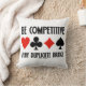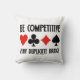 Zeigen Sie Ihr wry dupliziertes Bridge-Gefühl von Spaß mit diesem Kissen mit den vier Karten-Anzügen zusammen mit dem folgenden Sound-Ratschlag für alle, die mit anderen konkurrieren wollen: "Be Competitive Play Duplicate Bridge".