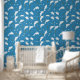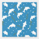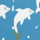 Tauchen Sie ein in eine Welt voller Spaß mit diesem verspielten Delfinmuster. Dieses Design, das bezaubernde weiße Delphine mit blauen Wellen und Algen zum Schwimmen einlädt, ist ideal, um Ihren Projekten eine Touch der Meeresfreude hinzuzufügen. Ideal für Stoffe, Tapeten oder jedes nautische Design.