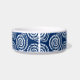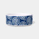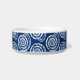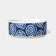 Pet-Schüssel in Blockdruckmuster auf der Grundlage einer Spiralsenke, weiß auf kobaltblauer Unterlage