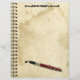 Hier ist ein wirklich lustiger Stationär. Das Aussehen eines alten Spiralladenjournal. Die Seite sieht farbig aus, als ob sie mit Ihnen um die Welt gekommen wäre. Ein Tintenstift unten mit einem Tintenfleck. Der Text hat das Aussehen eines abgenutzten Typs. Dieses stationäre System macht es Spaß, Briefe zu schreiben.