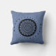 Schönes kreisförmiges Mandala-Design in schwarz auf matt blauem Hintergrund. Inspiriert von mehndi henna Körperkunst.
