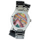 Diese Frauenuhr hat ein Retro-Design der 1970er Jahre, das aus einem auf dem Kopf platzierten Vs besteht, der an drei Stellen in Retro-Farben geschichtet ist.