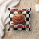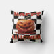 Fügen Sie Ihrem Zuhause einen spukhaften Akzent mit diesem Halloween-Kissen mit einem gruseligen, blutigen Kürbis auf einem feinen Schachbrettboden hinzu. Ideal für Spuk Hausvibes oder gotische Dekoration.