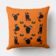 Nine curious cats, four grinning pumpkins, and a web of Halloween charm—this throw pillow brings playful fright to any cozy corner.