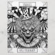 Halloween thematische Erwachsenenfärberseite mit einem gruseligen Clown im Zirkus.