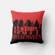 Spooky Happy Halloween werfen Kissen mit roten Blut Tropfen Illustrationen. Beängstigende Wohngestaltung für die Ferien. Doppelseitig mit dem gleichen Design auf einem schwarzen Hintergrund.