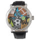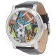 Uhr, Vintage Männeruhr mit schwarzem Lederarmband