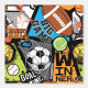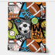 A bold, energetic sports collage featuring basketball, football, soccer, tennis, and baseball elements with dynamic typography like “Big Game,” “Goal Time,” and “Winner,” set in bright, high-contrast colors.