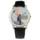 Uhr, Vintage Männeruhr mit schwarzem Lederarmband
