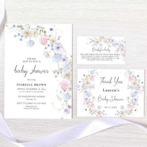 Sie möchten dauerhafte Erinnerungen an Ihrer Baby-Dusche schaffen? Unsere exklusive Kollektion, die von Ihnen individuell gestaltet werden kann, ist die perfekte Lösung! Spring Pink Lila Kleine Wildblume Kinderdusche Einladung.