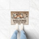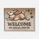 Springen Kaninchen für einen herzlichen Empfang, s Fußmatte