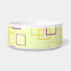 Dieses Muster besteht aus überlappenden Quadraten in zwei verschiedenen Farbtönen - goldgelb und lila - auf hellgelbem Hintergrund angeordnet. Die Quadrate variieren in ihrer Größe, wobei einige als eigenständige Elemente erscheinen, während andere miteinander verwoben sind, was ein Gefühl von Tiefe und Bewegung schafft. Zusätzlich sind kleine rechteckige und lineare Akzente verstreut, was den abstrakten und dynamischen Charakter des Designs noch verstärkt.