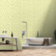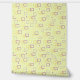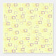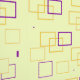 Dieses Muster besteht aus überlappenden Quadraten in zwei verschiedenen Farbtönen - goldgelb und lila - auf hellgelbem Hintergrund angeordnet. Die Quadrate variieren in ihrer Größe, wobei einige als eigenständige Elemente erscheinen, während andere miteinander verwoben sind, was ein Gefühl von Tiefe und Bewegung schafft. Zusätzlich sind kleine rechteckige und lineare Akzente verstreut, was den abstrakten und dynamischen Charakter des Designs noch verstärkt.