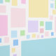 wallpaper with geometry design, many squares various sizes, pastel color tones