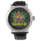 Squatch GQ Men Vintager schwarzer Lederstraffe Armbanduhr