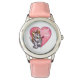 Kinderuhr aus Edelstahl mit rosa Lederarmband