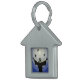 Schützen Sie Ihr Haustier mit dieser hübschen St. Francis Tierschutzmarke. Dieses Design besticht durch eine Schwarz-Weiß-Silhouette des Heiligen Franziskus von Assisi. Er streckt sich die Hände aus, um die Vögel am Himmel zu segnen. Hübsche Blau- und Grautöne bilden eine Himmelsform im Hintergrund. Ideal für einen neuen Hund oder eine neue Katze.